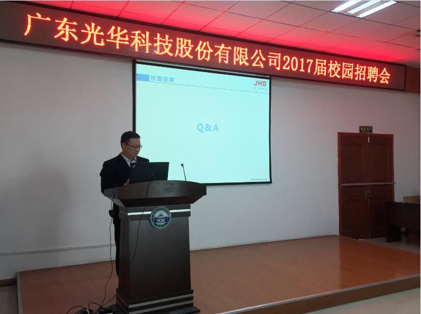 10月10日,光華科技圓滿完成2017校園宣講會武漢之行。在為期兩天的時間里,光華科技通過武漢大學及武漢工程大學兩場宣講會,與莘莘學子們進行了深入的交流。 宣講期間,光華科技深切感受到了江城學子們良好的精神風貌。不少同學特意一早趕到了現(xiàn)場,在宣講環(huán)節(jié)中踴躍提問、展示自我,方方面面體現(xiàn)了自己成熟的職業(yè)觀。