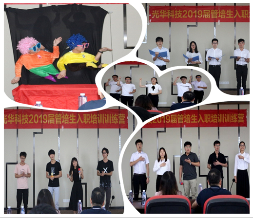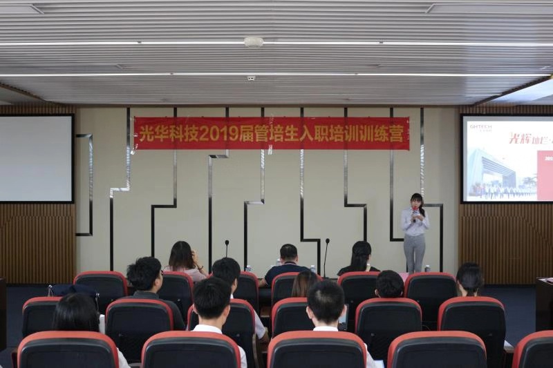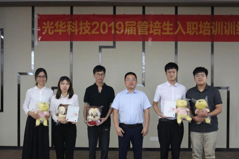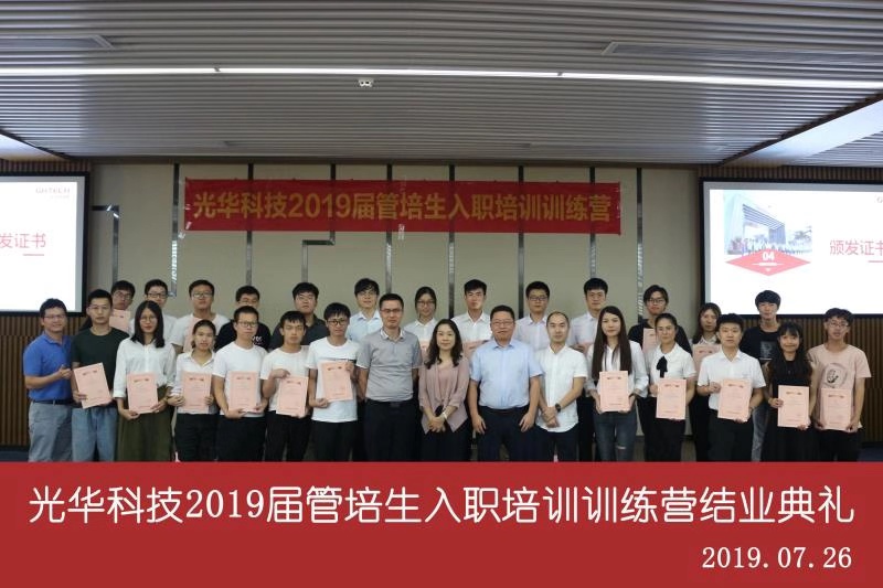 7月初,光華科技迎來了一批新生力量——2019屆管培生,為了幫助大家完成從在校生到職場人的華麗轉身,公司精心打造了管培生入職培訓訓練營,隨著軍訓鍛煉、文化融入、理論授課和上崗實操等一系列干貨滿滿的培訓安排后,光華科技2019屆管培生入職培訓訓練營慢慢落下帷幕。7月末,在公司領導的指導下,經過人資部門的精心策劃,全體管培生們積極參與和排練,給大家呈現了一臺精彩的結業典禮。