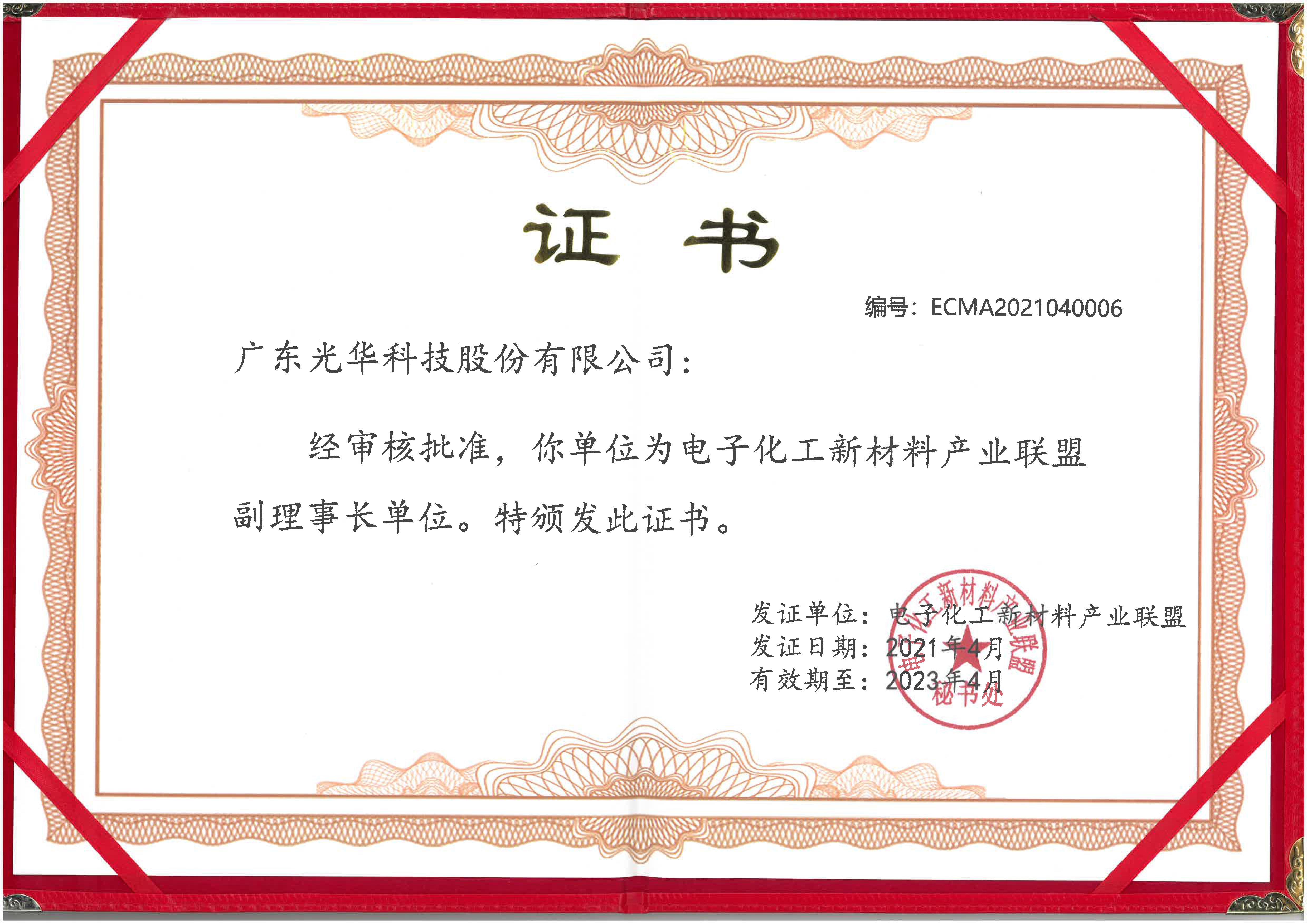 會議召開了電子化工新材料產業聯盟一屆六次理事會,聯盟秘書處向大會作了聯盟一屆理事會工作報告,大會選舉產生了新一屆理事會,光華科技蟬聯聯盟副理事長單位,光華科技董事、光華科技研究院總經理楊應喜當選聯盟副理事長。