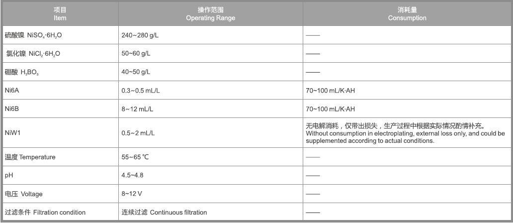 Niw1: Wetting agent. It can decrease the surface tension of plating solution and avoid presence of pinholes and pockmarks.
